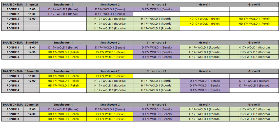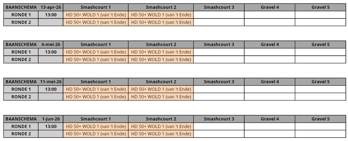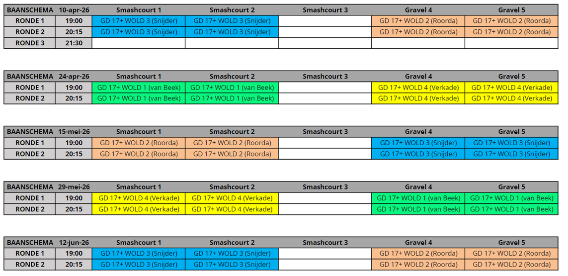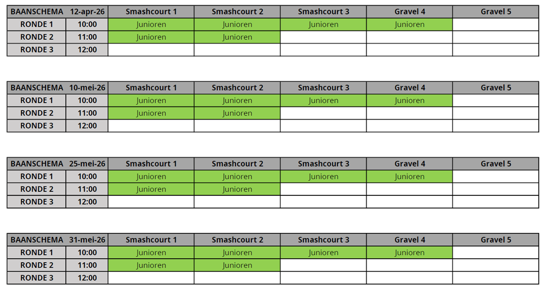 Klik op de onderstaande buttons om de baanindelingen van de competitie te openen.