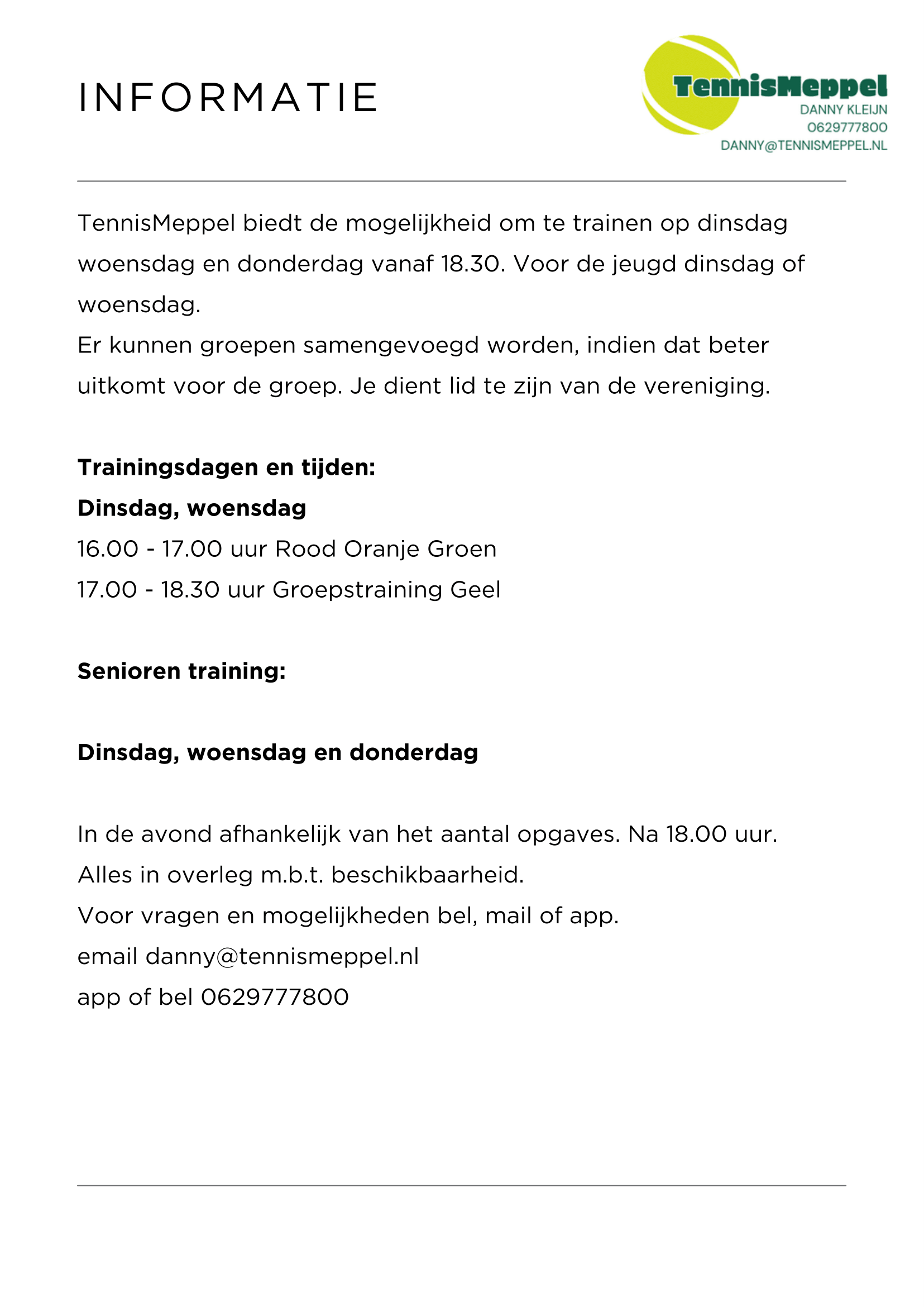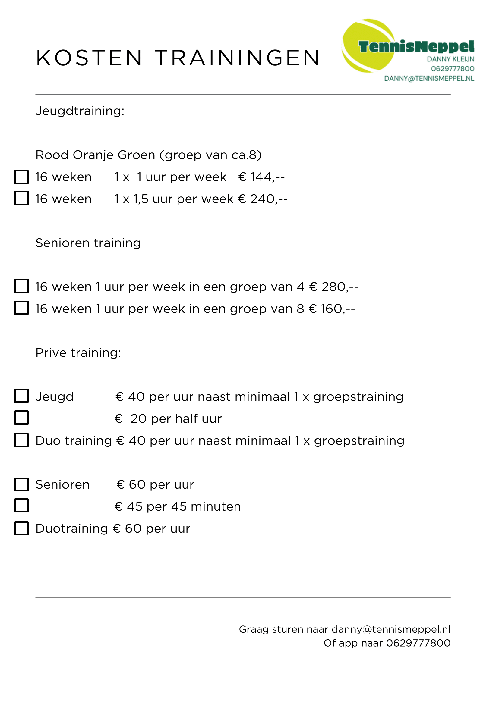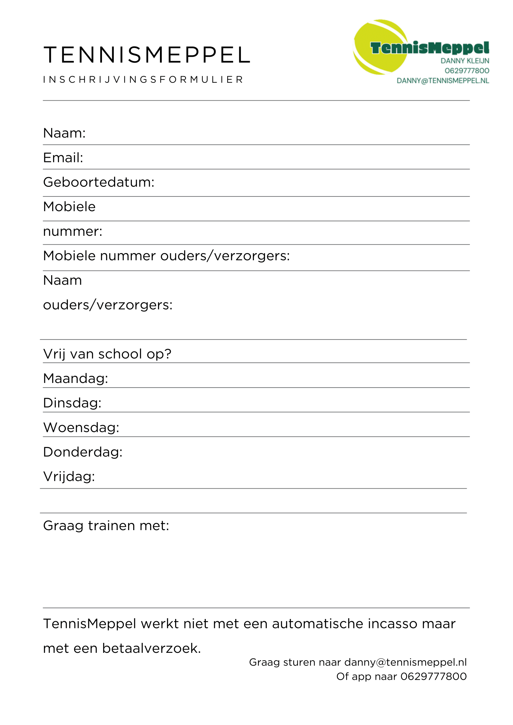 Inschrijfformulier tennisles TennisMeppel. Klik op de pagina´s om te vergroten.